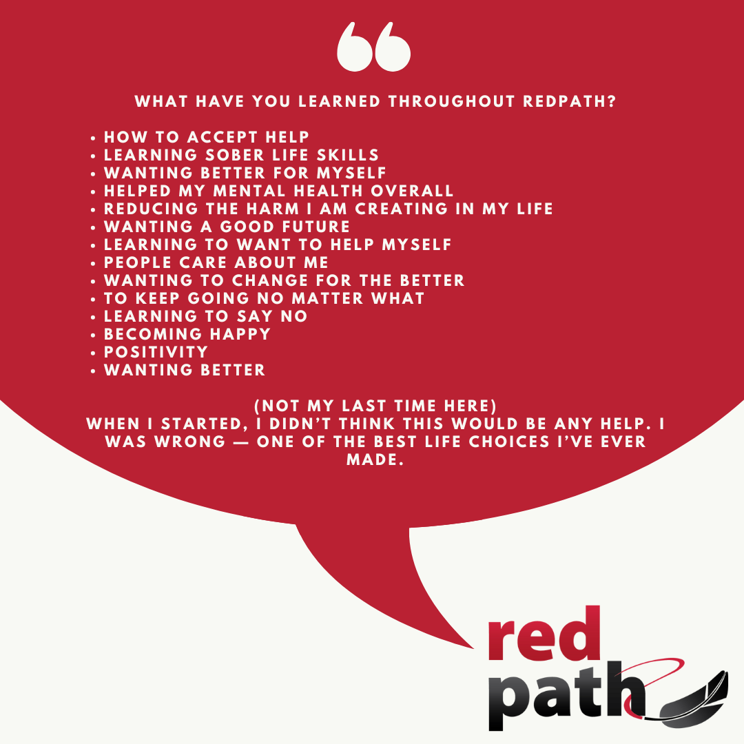 The RedPath Wellness Centre was created as a space where the Right to Heal and RedPath programs could be put into action in a practical, supportive environment. It fills critical gaps that many people fall through — offering structure, connection, and continuity for those working to grow, stabilize, and rebuild their lives.